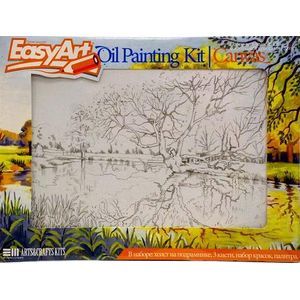 В наборе: деревянный подрамник с холстом (30х40 см), 3 кисти, набор масляных красок (12 цветов), пластиковая палитра.