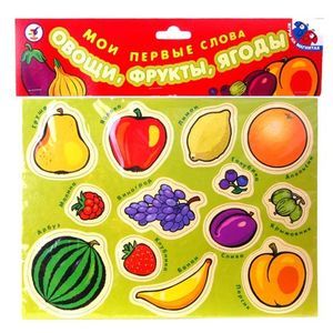 Картонные карточки (овощи и фрукты) на магнитах в блистере.