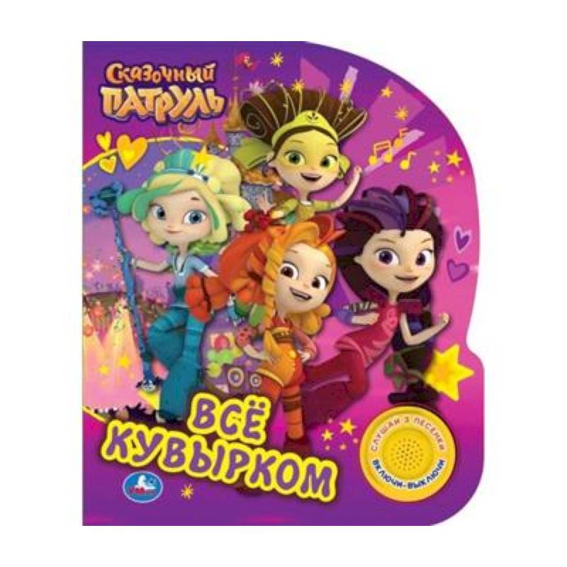 Музыкальная книжка 'Всё кувырком' Сказочный патруль (1 кн. 3 пес., фольга) Музыкальная книга «Сказочный патруль. Всё кувырком» ТМ «УМка» - отличный подарок для маленьких поклонников мультсериала про юных волшебниц:- 1 звуковая кнопка- 3 песенки из м/ф (фрагменты): «Сказочный патруль», «Звезда», «Город Мышкин»- увлекательный сюжет- любимые герои- яркие иллюстрации- удобный форматРебёнок с удовольствием будет листать плотные картонные страницы, рассматривать красочные картинки, читать вместе с родителями про приключения любимых персонажей, а также нажимать на кнопку и слушать весёлые песенки. Малыш легко освоит включение звука: при нажатии на кнопку включится первая песенка, при втором нажатии выключится, в 3-ий раз - заиграет следующая и т.д. Благодаря компактному формату книгу удобно взять с собой в дорогу.Чтение музыкальной книги ТМ «УМка» и игра с ней развивают:- слуховое восприятие- мелкую моторику- фантазию- образное мышление- памятьОбъём: 8 стр. Формат: 152 х 185 мм.Материал: пластмасса + картон.Работает от 3-х батареек типа LR1130 (в комплекте).Рекомендовано детям старшего дошкольного возраста.