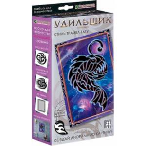 Набор 'Удильщик. Трайбл тату' разработан для создания оригинальной диорамной картины с хард-дизайном в стиле Трайбл тату. Основой для картины служат тематический фон с яркими контурами и броская 3D рамка, а детали из чёрной самоклейки сложатся на прозрачном пластике в охотника-удильщика - благодаря двухуровневому расположению изображений картина приобретает эффект оптической иллюзии.