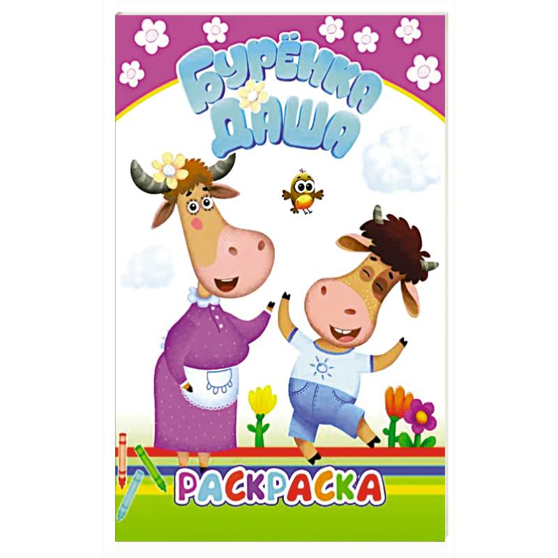 Раскраска формата 14х20 см, 14 полноЦВЕТНЫХ стр. на офсете с ОБРАЗЦАМИ для раскрашивания. С героями м/ф 'Бурёнка Даша'.