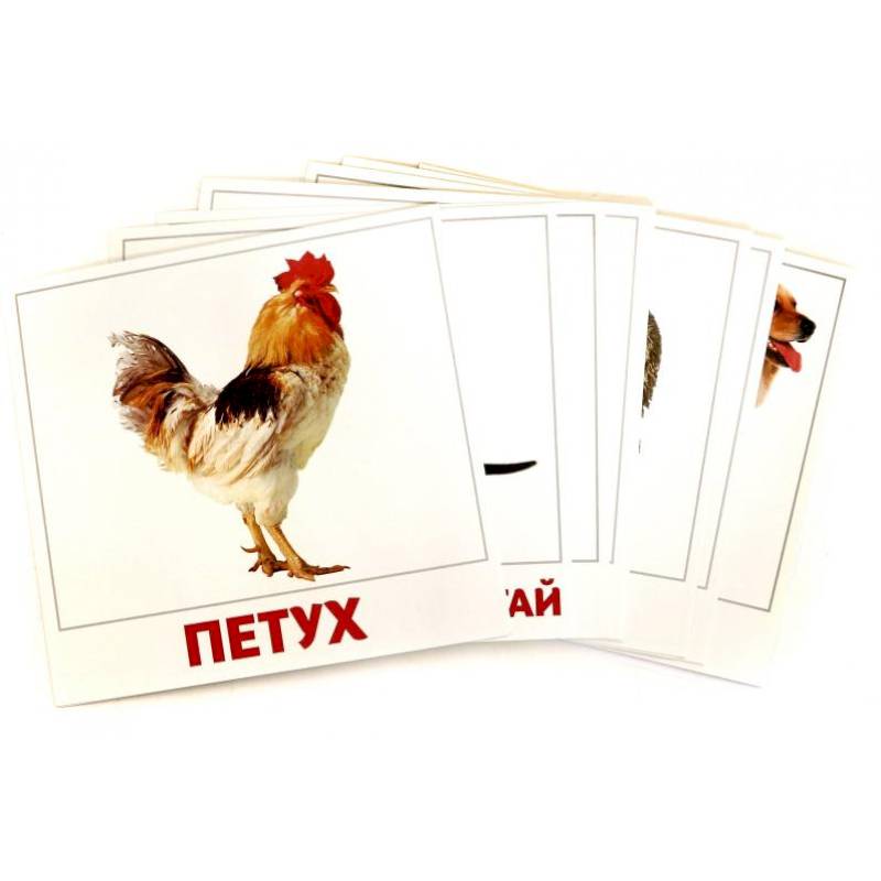 Карточки животных намеренно сделаны на белом фоне (по Доману), лишних деталей, мешающих восприятию, на картинках нет.