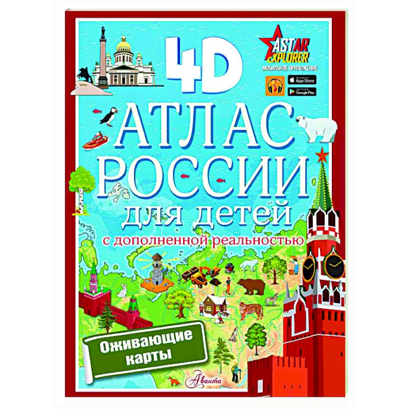 Этот уникальный атлас с дополненной реальностью станет верным спутником любознательных ребят в их путешествии по России, которое можно совершить, не выходя из дома. Юные читатели узнают о государственных символах нашей страны, о её городах и их достопримечательностях, о разнообразии животного и растительного мира, о природных чудесах и богатствах недр. Сделать это путешествие более интересным и насыщенным помогут карты и красочные иллюстрации, важные сведения и любопытные факты. Но главное, красивейшие города России и их достопримечательности, удивительные природные явления, представителей флоры и фауны и даже чудеса родной страны можно будет увидеть в цвете, объёме и мельчайших подробностях, а также прослушать звукозаписи с дополнительной информацией о каждом из представленных объектов. Для этого необходимо лишь скачать бесплатное приложение ASTAR EXPLORER на мобильное устройство, настроить его и действовать согласно инструкции.