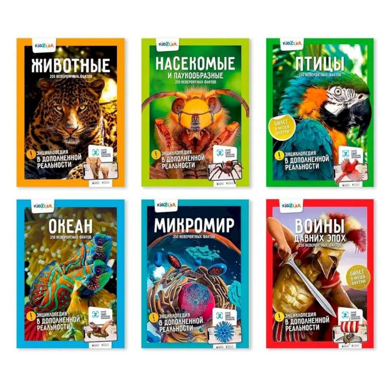 Комплект из пяти уникальных книг-энциклопедий в дополненной реальности.