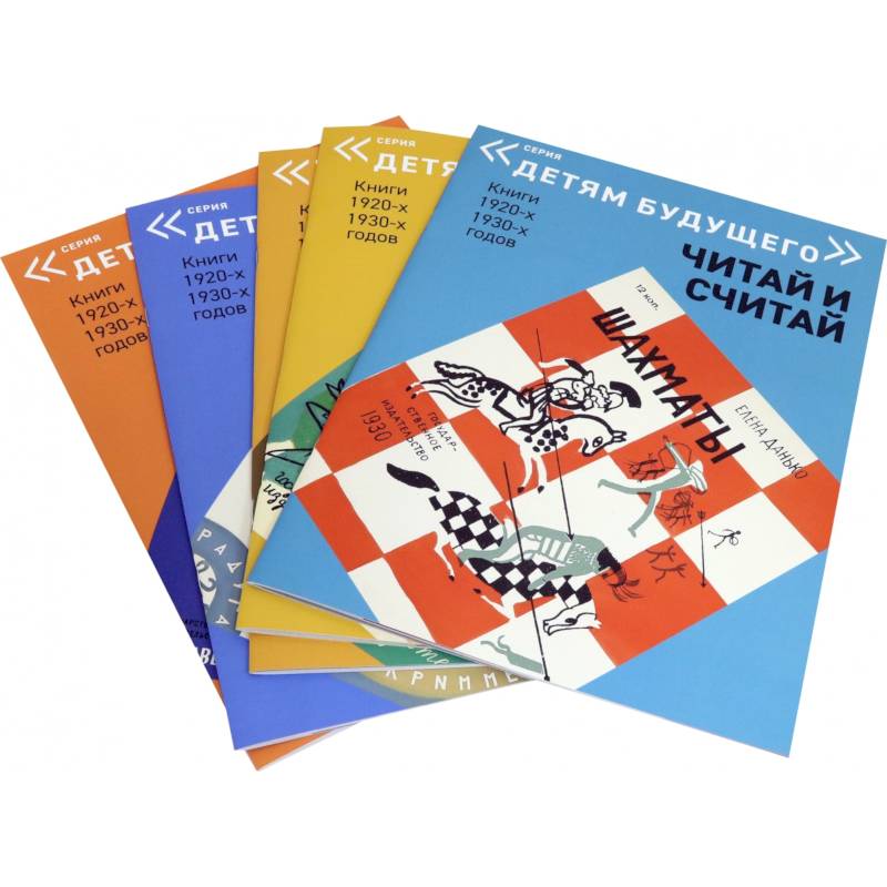 Переворот в детской литературе произошёл в 1910-1920-х годах, когда морализаторскую и нередко слащавую продукцию для маленьких читателей сменили тексты и иллюстрации, основанные на иных принципах. Одним из первых теоретиков и практиков новой детской книги стал Корней Чуковский, утверждавший, что пишущий для детей должен сам смотреть на мир глазами ребёнка. После революции установка большевиков на ускоренную ликвидацию неграмотности принесла свои плоды, и уже в середине 1920-х возник большой рынок изданий для детей. В 1924 году появился отдел детской литературы в рамках Госиздата - крупнейшего государственного издательства. Новое поколение писателей и художников создало интереснейший феномен - советскую детскую книжку-картинку. Несмотря на идеологические установки государства, заинтересованного в воспитании 'нового человека', многие из этих книг свободны от официозной идеологии. Как правило, они гораздо качественнее сегодняшней массовой продукции для детей. И вместе с тем это памятник эпохи, устремлённой в будущее. В этой папке пять разных книжек 1925 и 1930 годов. В каждой заложены возможности тренировки навыков счёта. И если в книжке для малышей 'Цифры' вообще нет текста, то 'Шахматы' и 'Часы', адресованные десятилетним школьникам, с большой пользой прочтут и их родители.