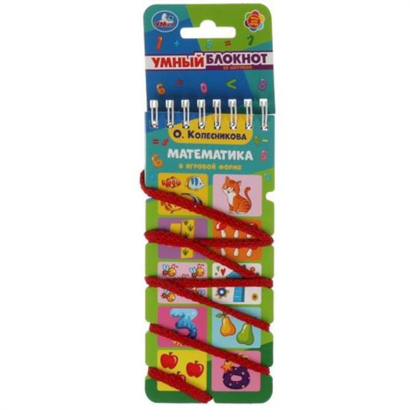 Умный блокнот с хэдером О. Колесникова. 'Математика.' непременно понравится маленьким любознайкам:- учим буквы- интересный формат: шнуруем, переворачиваем и проверяем ответ- увлекательно и познавательно- занимательные заданияСуть занятия: блокнот открывается обложка к обложке, ребёнок вместе с родителями решает задачу, соединяя с помощью шнурка картинку из правого ряда с картинкой из левого ряда. Ответ можно проверить, перевернув блокнот: если узор шнурка совпадает с нарисованным узором на страничке, значит задача решена верно. Такие увлекательные игровые задания помогут дошкольнику в усвоении счёта и понимании простых математических функций и знаков и развитии логического мышления.Занятия с блокнотом также способствуют развитию:- мелкой моторики рук- памяти- внимания- усидчивостиОбъём: 32 стр. Формат: 70 х 155 мм.Материал: офсетная бумага + картон + металл + текстиль.