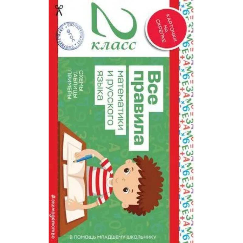 Пособие содержит все основные правила по математике и русскому языку за 2 класс. Доступность материала, множество примеров, наличие схем и таблиц облегчат усвоение материала и сделают процесс обучения более наглядным. Каждую страницу пособия можно вырезать по пунктирной линии и использовать как карточку, которая поможет акцентировать внимание на правиле и быстро его запомнить.