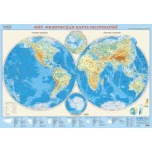 На карте изображены Восточное и Западное полушария, а также карты-врезки Северного и Южного полюсов (масштаб 1:50 000 000).